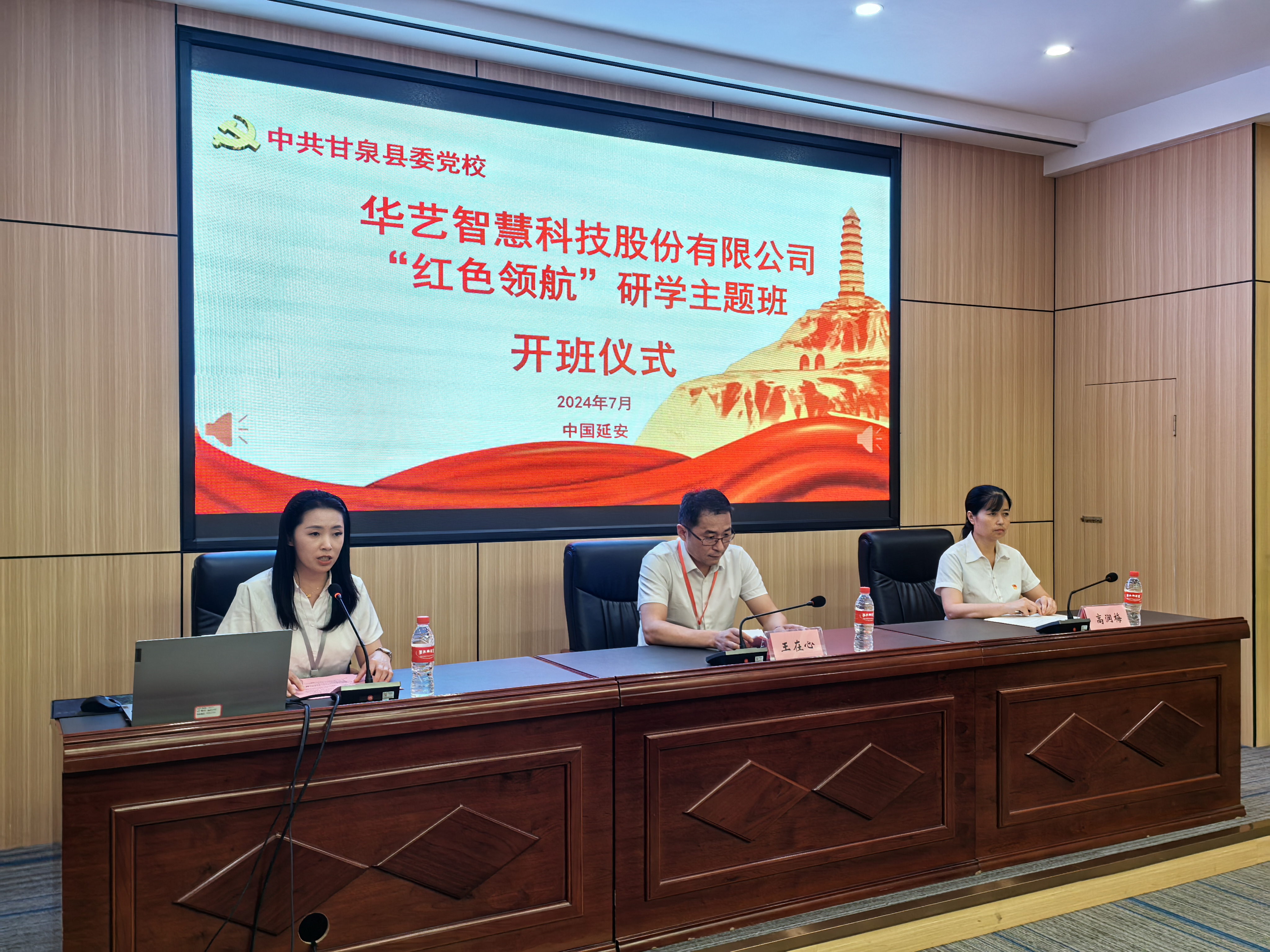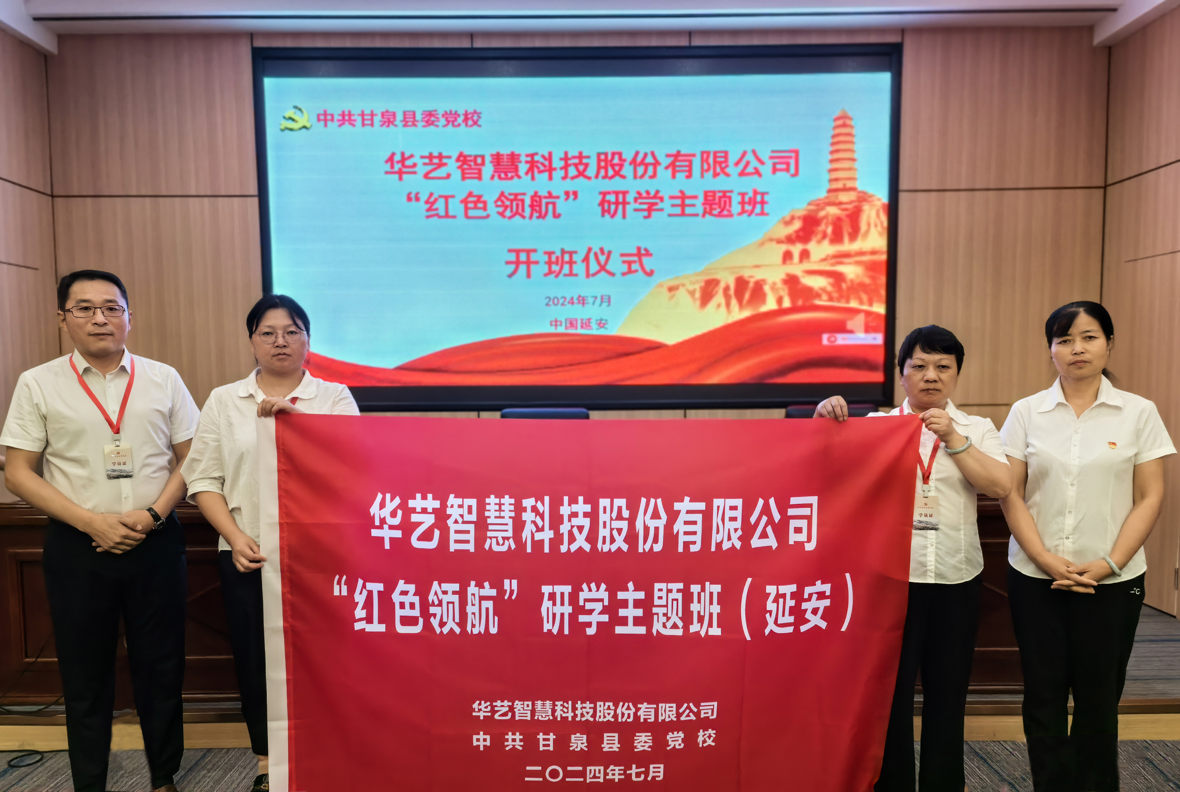 为持续推进党史学习教育活动,大力弘扬延安精神,赓续红色血脉,激励党员干部艰苦奋斗、开拓创新。7月18日—20日,华艺智慧科技股份有限公司党支部组织党员干部及中高层团队开展“红色领航”研学主题班(延安)活动。在开班仪式前,甘泉县党校副校长高润梅同志致欢迎辞,华艺智慧科技股份有限公司总裁王在心作动员讲话,并共同为培训班授班旗。