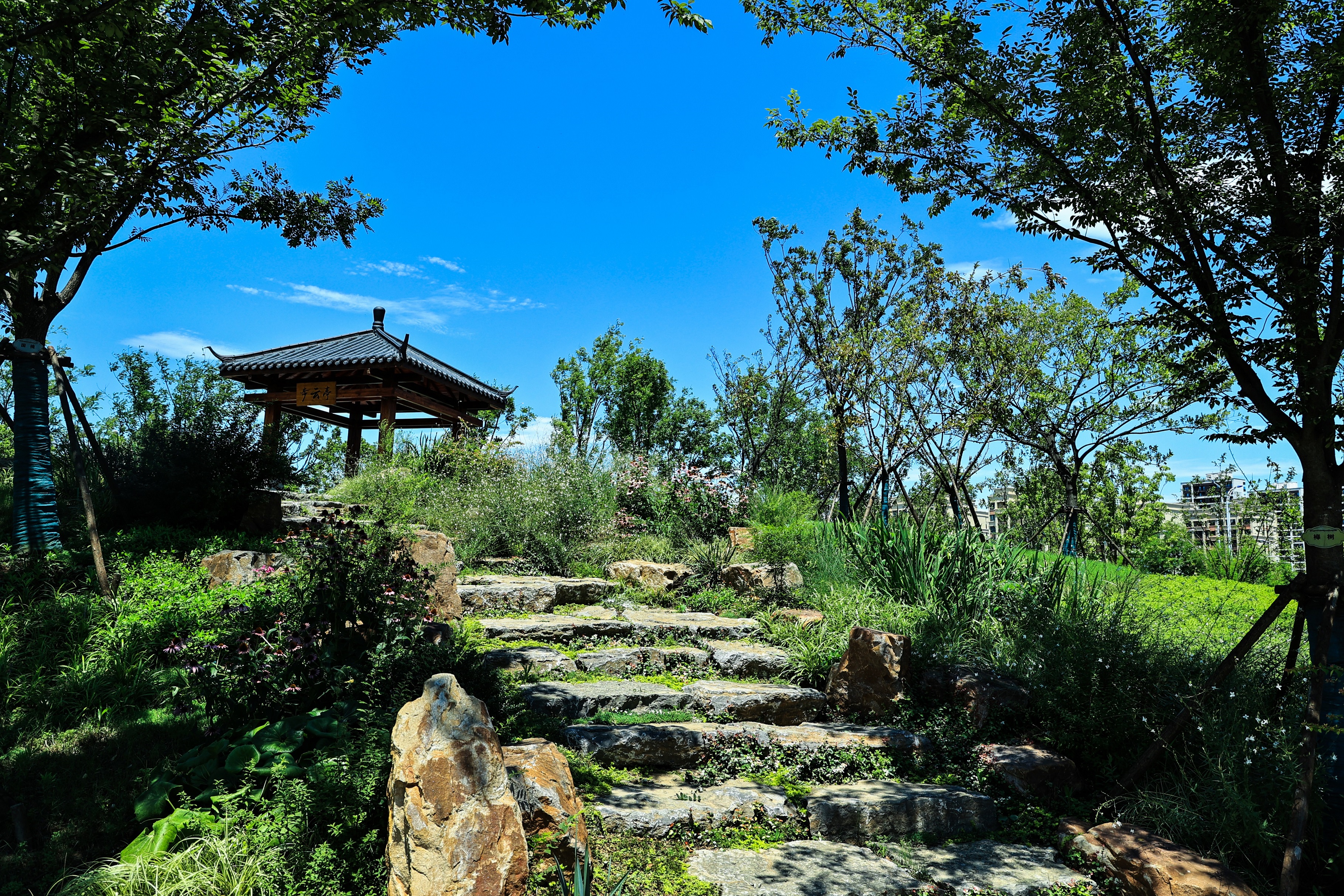 脚踩透水园路,在雨水花园、旱溪景观、下沉式绿地里,静听清溪奔涌之音,仰望蓝天白云,清风相伴,一股舒畅之气扑面而来。在城市门户的光影婆娑中,赏春花秋月,观夏雨冬雪,清欢雅乐,尽在其间。