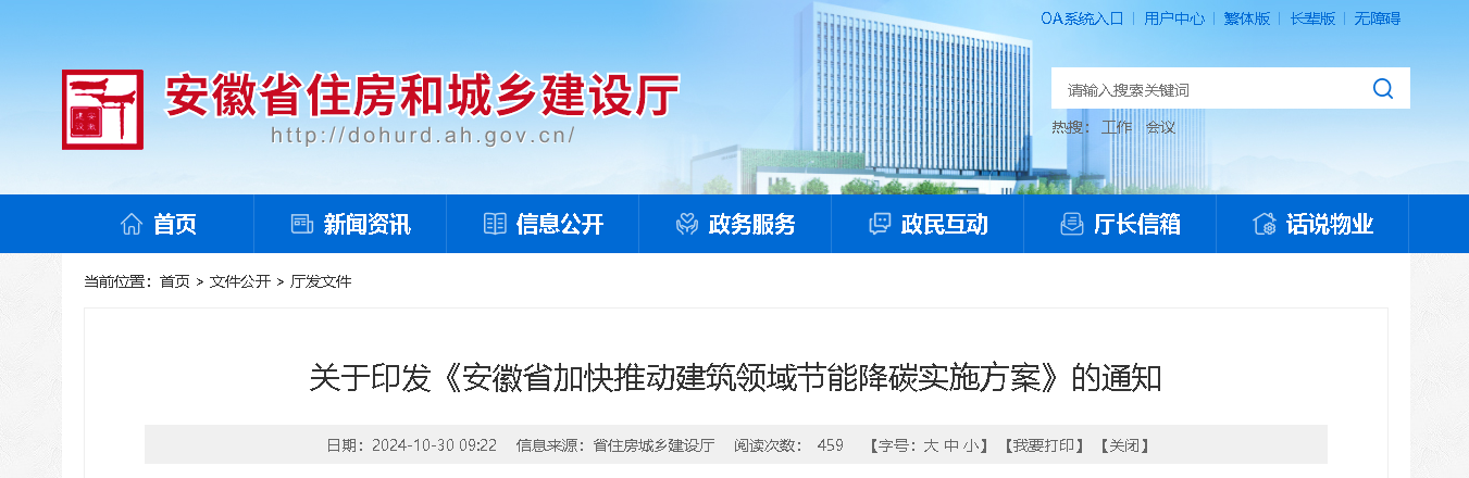 关于印发《安徽省加快推动建筑领域节能降碳实施方案》的通知