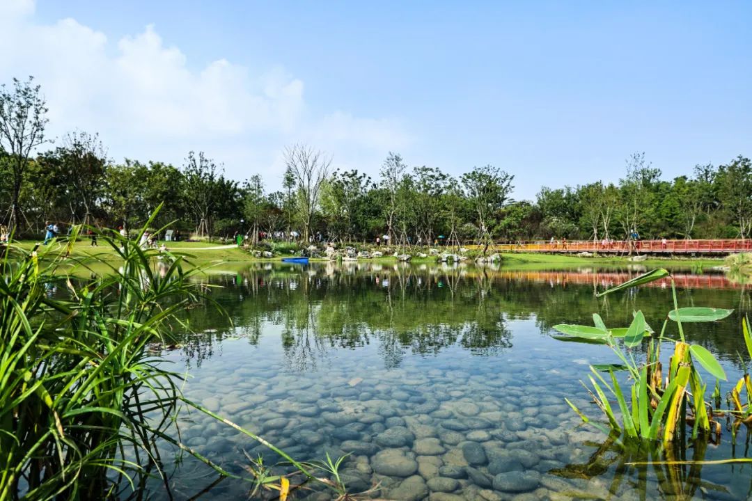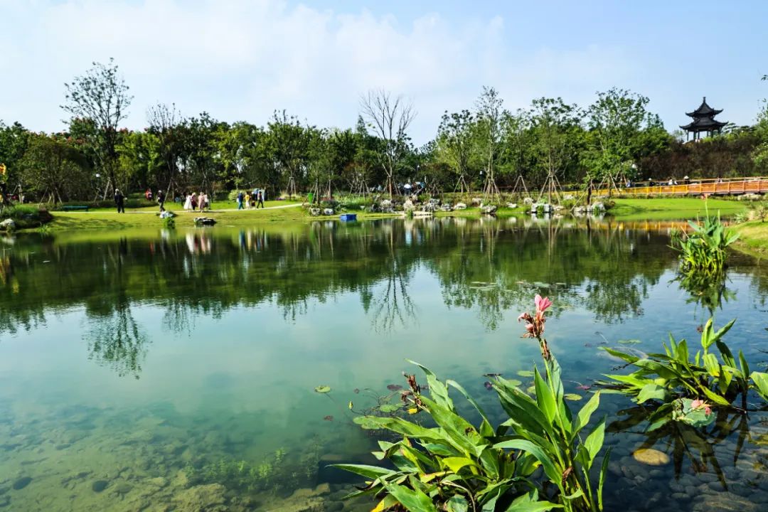 在珠翠湖的治理中,华艺园林从工程、环境、生态3个维度出发,采用生态疏浚方法,综合运用精确疏浚技术、基底修复技术、局部水体理化环境改善技术、湖滨带生态与景观修复技术和系统稳定化调控技术等,最大限度地清除淤泥污染,为后续生物技术的介入创造生态条件。同时,将地方城市展园与珠翠湖连通形成环形水系,并采用公司自主研发的专利技术“一种城市景观水的水循环式脱氮除磷装置”,将水体变静为动的同时降低水体中营养盐浓度,为创造清水型生态系统创造有利条件。