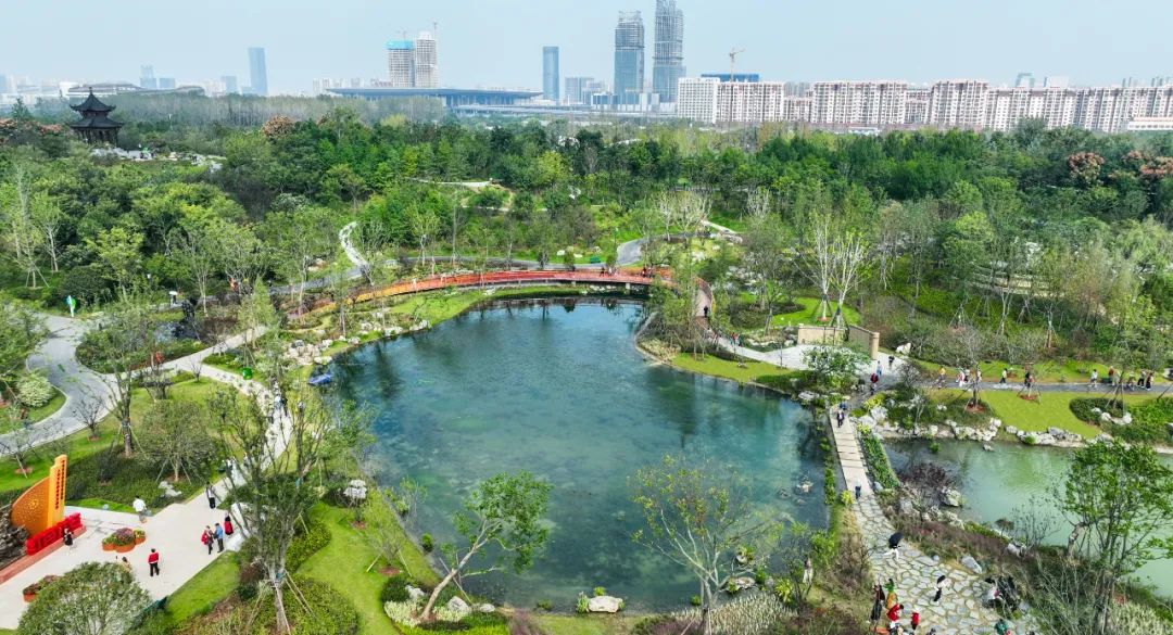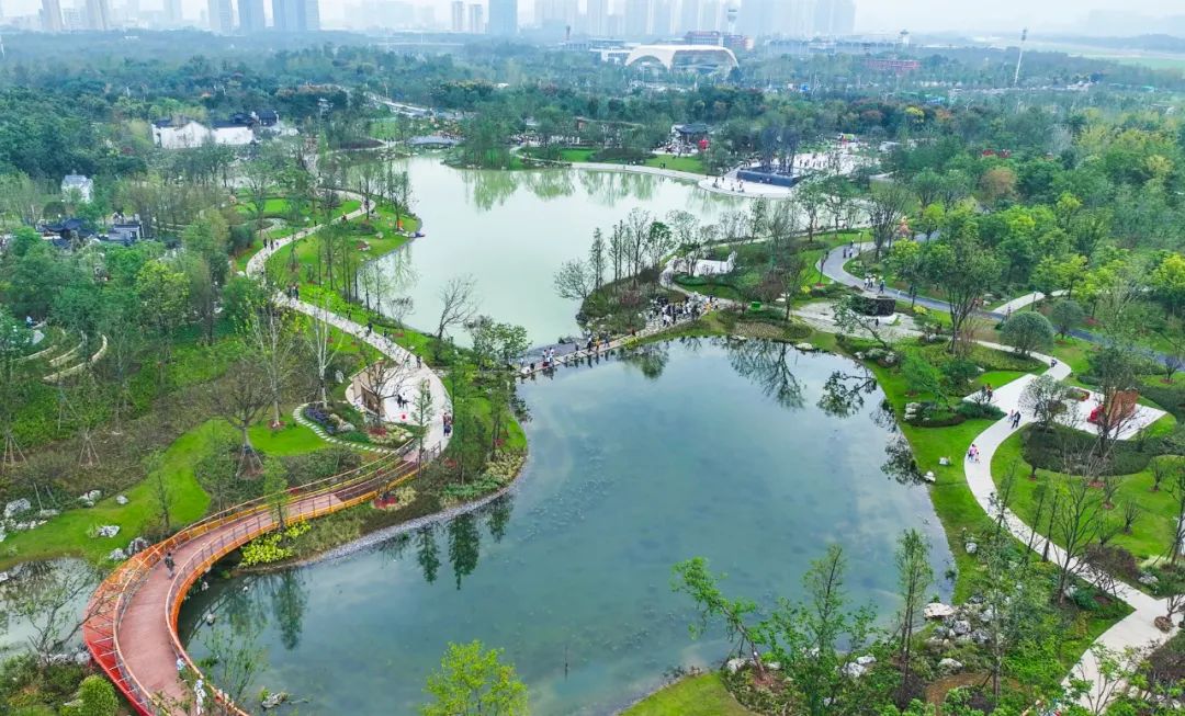 安徽省合肥市属亚热带季风性气候,梅雨显著、夏雨集中。为调蓄雨水,在城市展园与珠翠湖之间营造跌水花溪,同时运用公司自主研发的省级工法“一种跌水景观雨水调蓄系统施工工法”,将天然降雨进行集中收集—截污—过滤—存储—渗透—提升—回用到景观水系中。在提升跌水景观的趣味性和观赏性的同时,利用跌溪的水动力曝气瀑氧,提高水体的自净能力,缓解汛期排水行洪压力,实现雨水的资源化利用和园林景观的低碳养护。