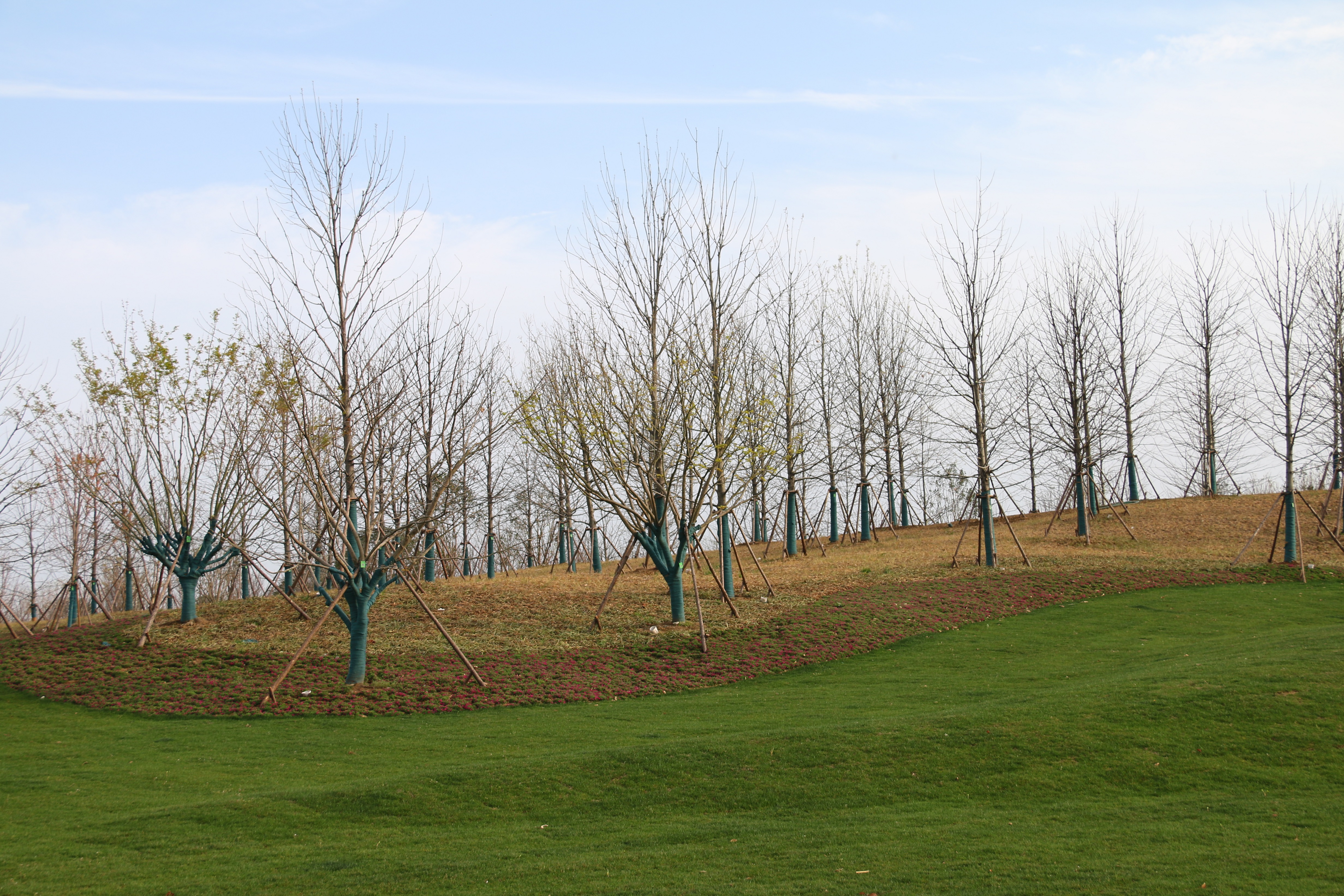 走进锦绣湖公园2标段建设现场,到处都是工人们忙碌的身影,挖掘机、旋耕机、洒水雾炮车等各类机械轰鸣作响,工人紧锣密鼓地进行着苗木栽植和园区道路施工。樱花、乌桕、红枫等新栽种的乔木迎风挺立,地被植物绿意盎然。