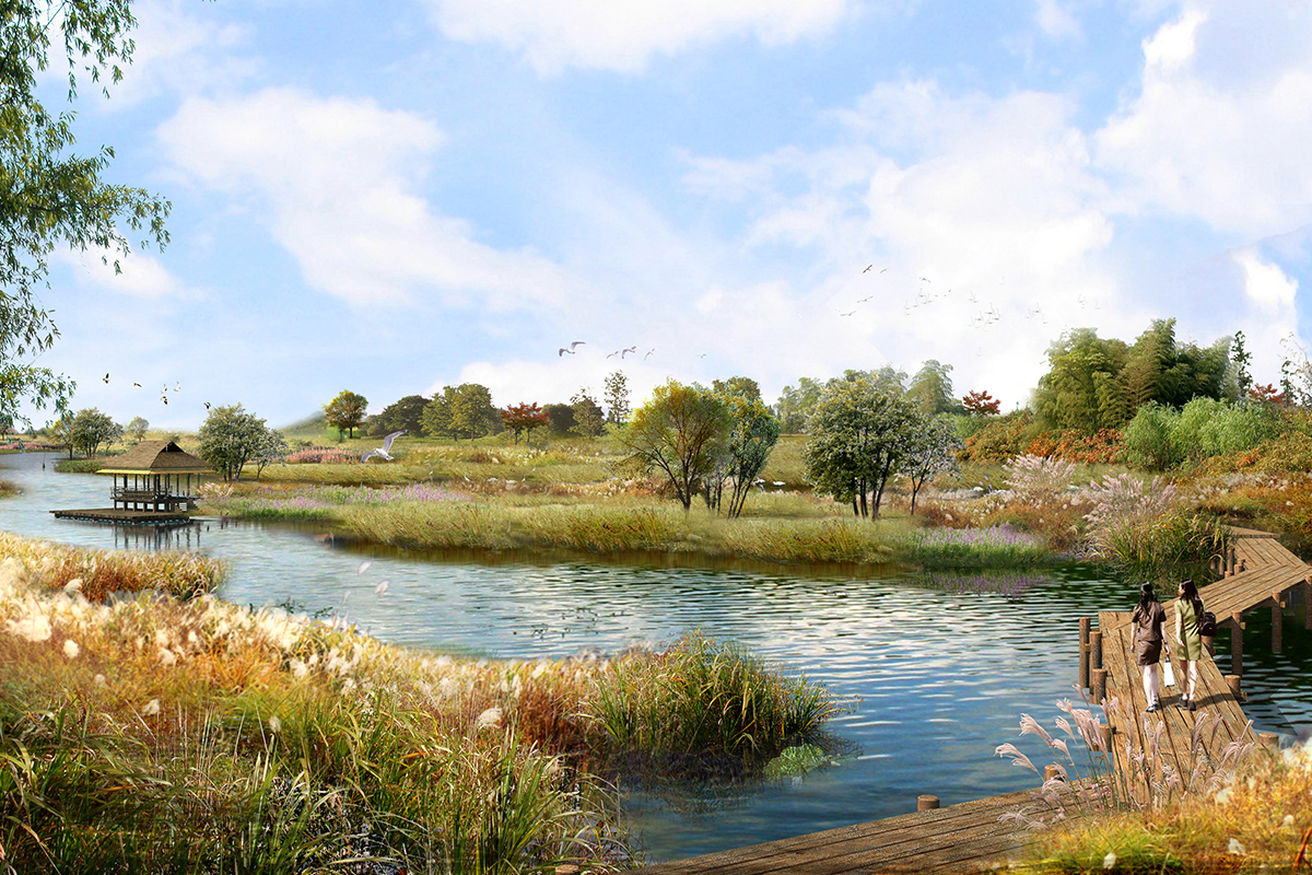 建筑的规划布置与地形紧密联系,保持原生态现状,实现人与自然和谐共生、共存。利用现有的地形,创新跌宕起伏的坡地系统,探索人与自然共存的亲和关系。